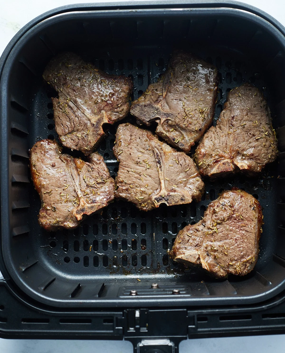 Leave a little space in between the lamb chops when you place them in the basket. Air fry for 5 minutes at 400 degrees F air fryer setting Check and make sure the meat is cooked before removing. Service right away with roasted.
